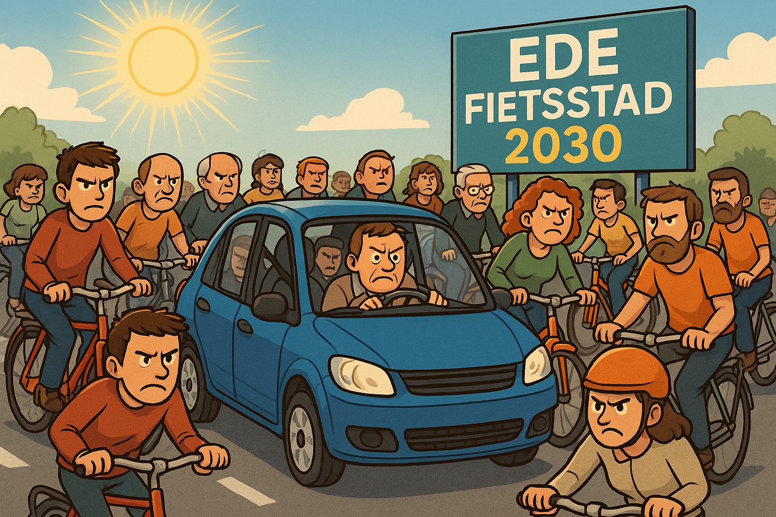 Welkom in de Edese oorlog tegen de automobilist. Het is een stille oorlog, gevoerd met een glimlach, bloembakken, onbegrijpelijke parkeerzones en een eindeloze stroom aan 'duurzaamheidsvisies'. De gemeente Ede heeft een droom: een stad waar iedereen op een bakfiets rondrijdt, gehuld in biologisch katoen en met een glimlach van oor tot oor alsof ze net de wereld hebben gered. De realiteit is een nachtmerrie van zoekende automobilisten, onbetaalbare parkeerkosten en een raadhuis dat de burger ziet als een 'gebruiker' die de auto 'verkeerd' gebruikt.